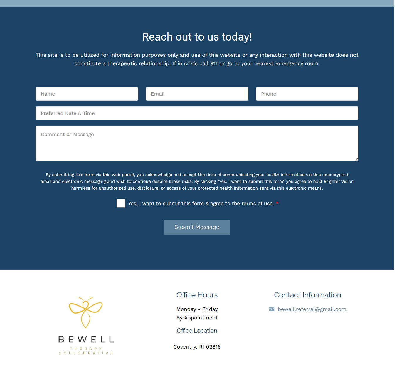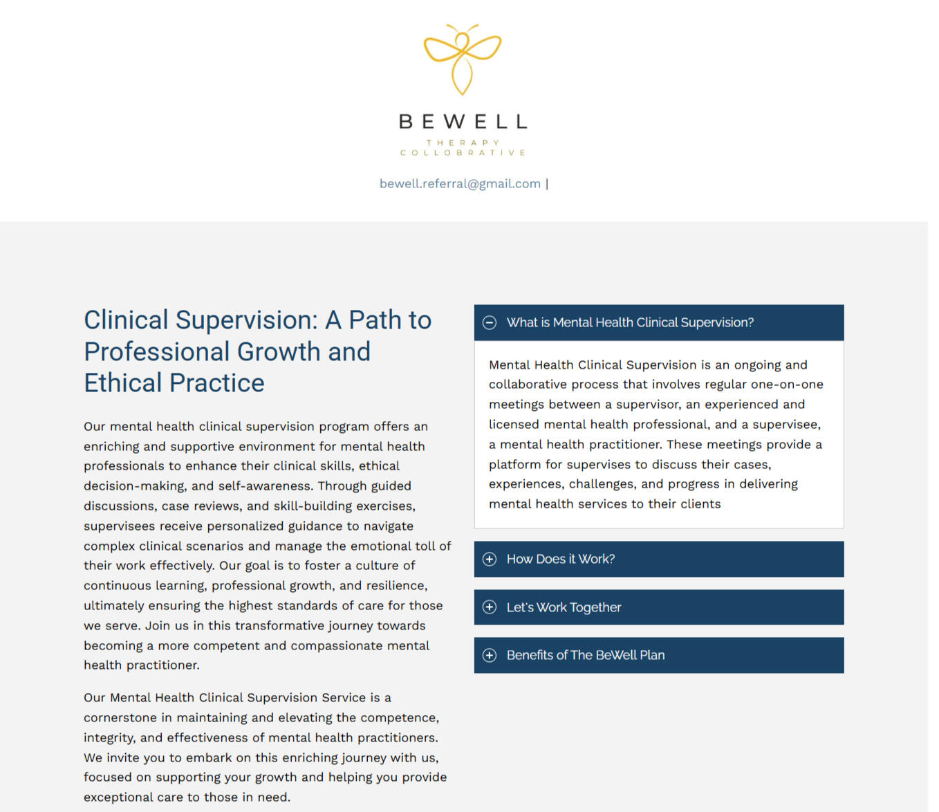 We revamped the BeWell Therapy Collaborative site by improving navigation, enhancing their branding colors for a more cohesive look, and adding a lead capture form tailored to location and therapy needs. The result is a user-friendly, visually appealing site optimized for conversions.