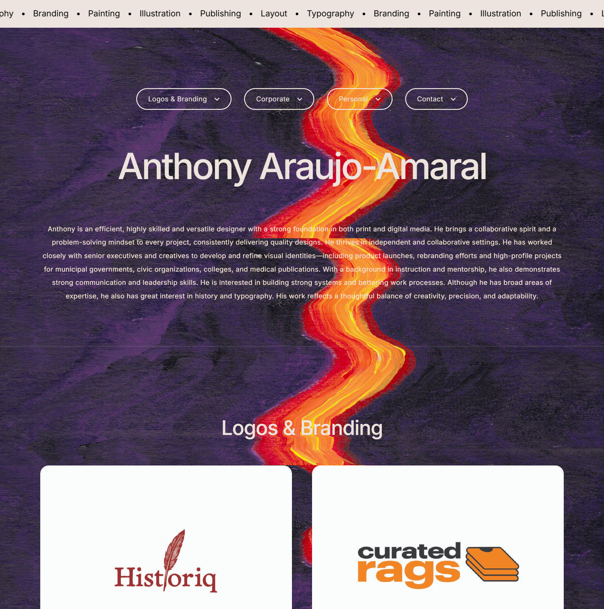 We built Anthony’s portfolio site from the ground up, creating a fun, engaging space that showcases his artwork in a clear, organized way. We used one of his original paintings as the site background to immediately immerse visitors in his creative world and reinforce his artistic identity. To add a playful finishing touch, we included a “Thanks for visiting” confetti cannon button, leaving users with a memorable and joyful send-off.